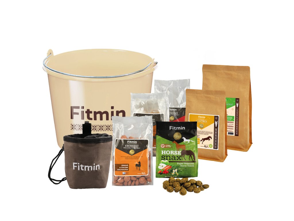 Produkty v dárkovém kbelíku jsou pečlivě vybrané tak, aby podporovaly zdraví, motivaci i pohodu koně.