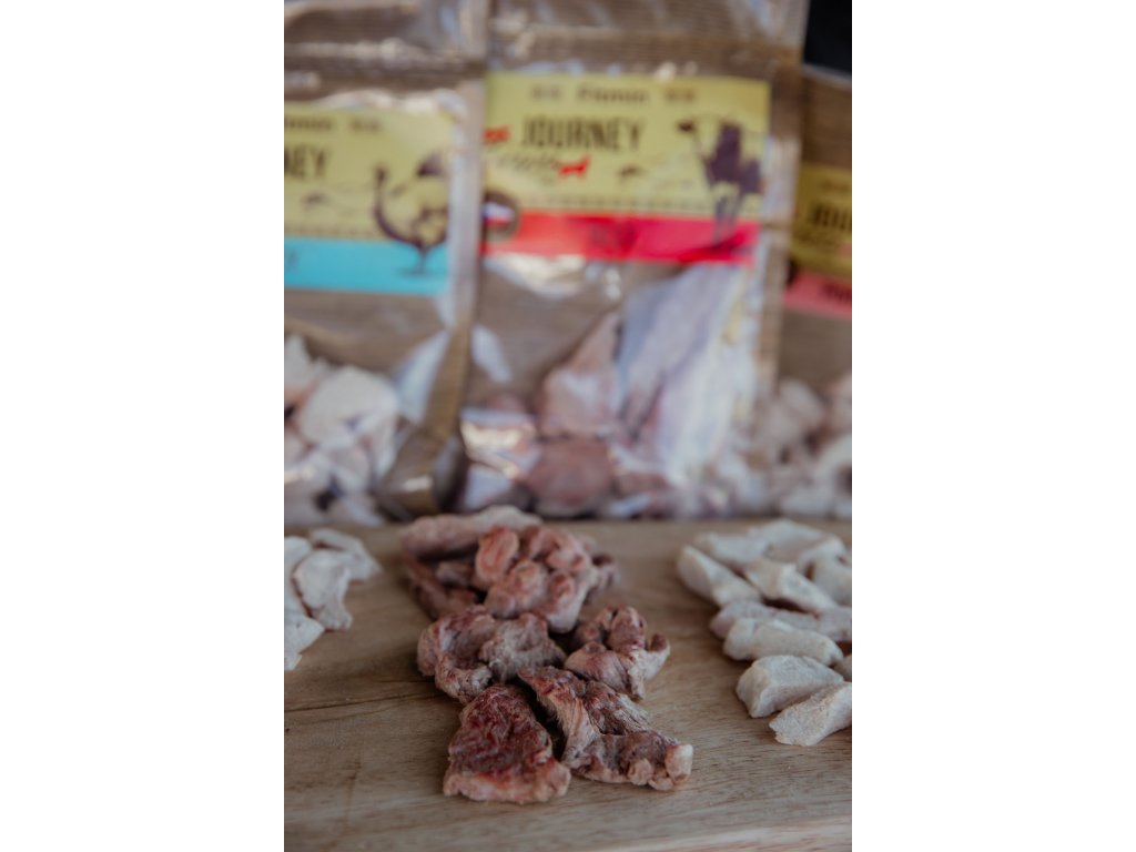 • Lyofilizace chrání přirozené živiny i strukturu masa; rychlá rehydratace