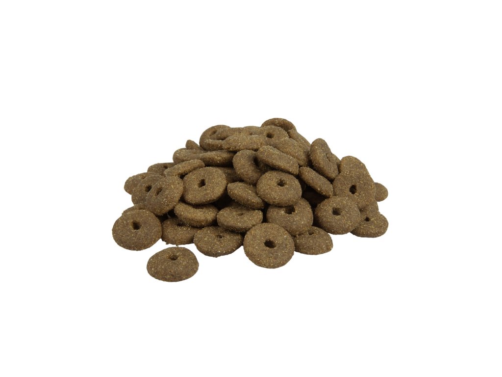 Krmivo obsahuje 74 % živočišných proteinů, 26 % bílkovin, 14,5 % tuků, 3734/15,6 kcal/MJ na kg.