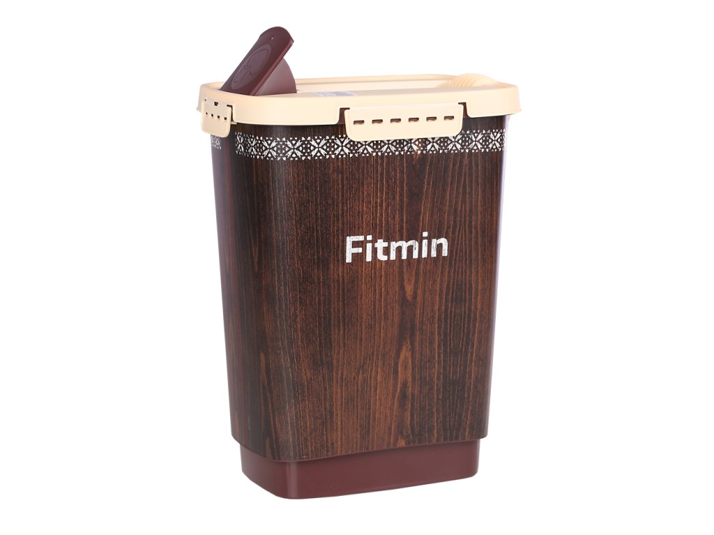 Kontejner má hranolovitý tvar s rozměry: výška těla 31 cm, šířka v horní části 24 cm (v dolní části 20 cm), hloubka v horní části 17 cm (v dolní části 12 cm). Měřeno z pohledové části, kde je umístěno logo Fitmin.