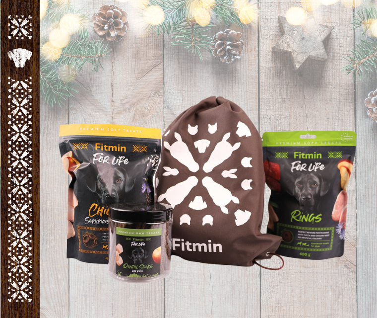 Vánoční balíček pro nadšené psí turisty a výletníky. Nové Fitmin For Life pochoutky s batohem na svačinu. V dárkovém balíku najdete dentální tyčinky Fitmin For Life Dental Sticks s řasou Kelpa, Fitmin For Life Chicken Flakes, Fitmin for Life Rings a nový batoh Fitmin, který se vám bude hodit i na delší výlety.